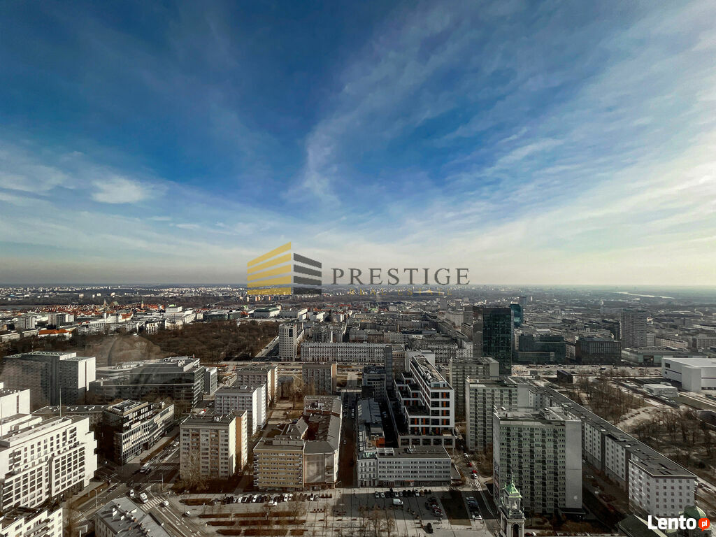 Twarda and Emilia Plater streets, and offers a stunning view of Warsaw