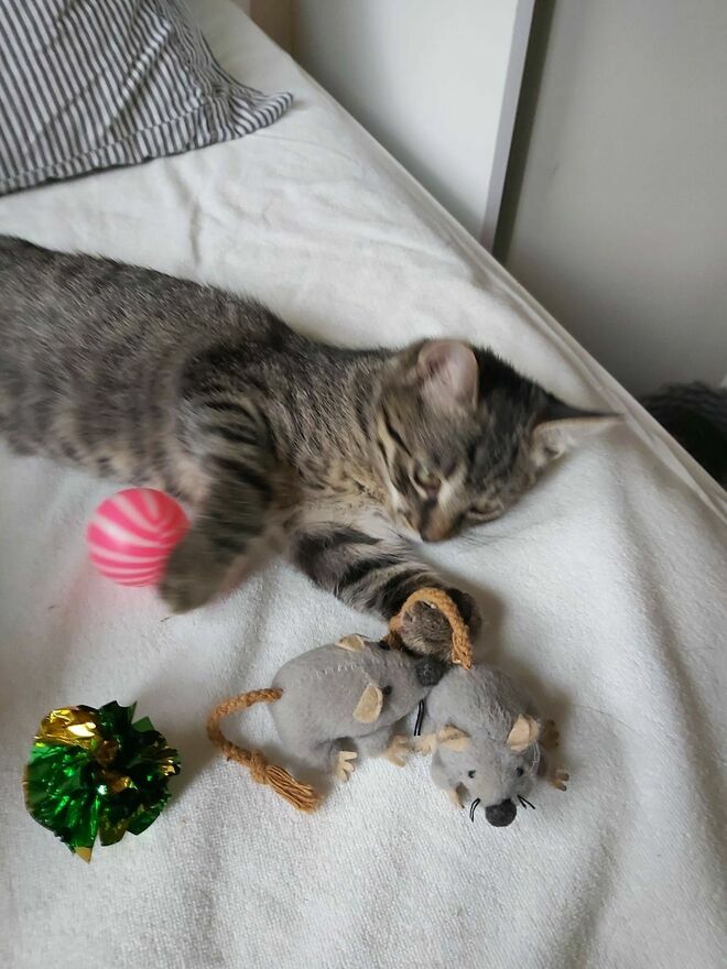 Tofik to kilkumiesięczny śliczny pręgowany tygrysek o idealnym charakterze. Zdjęcia niestety nie oddają jego urody. W domu tymczasowym kotek czeka na własny kochający domek. Przeszedł już obsługę weterynaryjną: kastrację, badania, testy FeLV/FIV, odrobaczenie i 2-krotne szczepienie. Jest zdrowy i zadbany. Korzysta z kuwety.Znaleziony jako maluszek na działkach od razu odnalazł się w mieszkaniu w towarzystwie dorosłych kotek. Tofik jest kocim ideałem. Słodki, ufny, mruczący ze szczęścia w kontakcie z człowiekiem. Jest łagodny, niestrachliwy, nie boi się obcych osób. Pięknie dogaduje się z innymi kotami. Jest pogodnym kociakiem, lubi się bawić, ale bez demolowania domu.