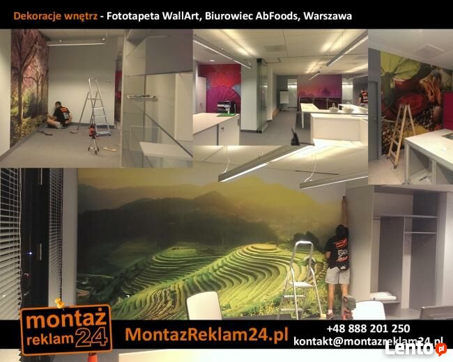 - naklejanie fototapet (lateksowych, fizelinowych, samoprzylepnych etc.)