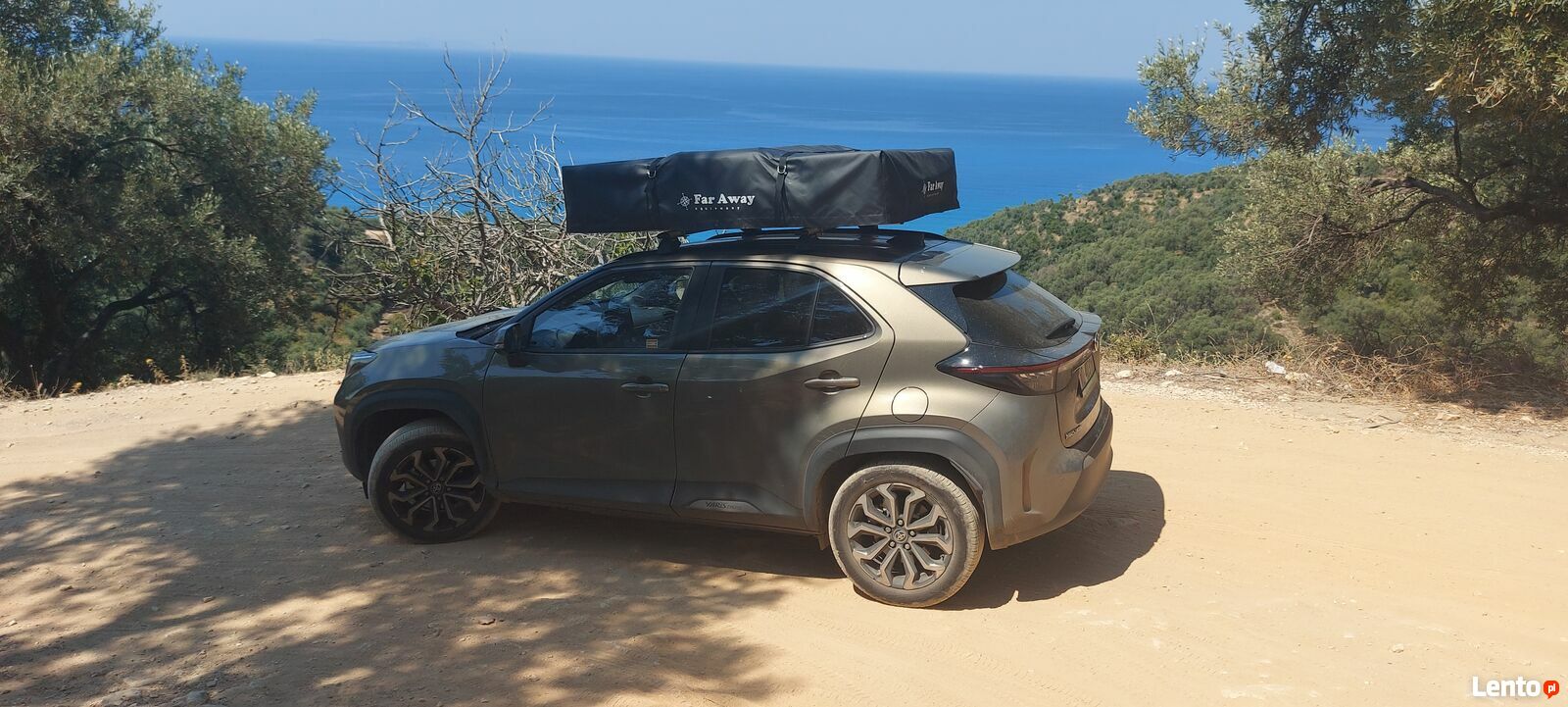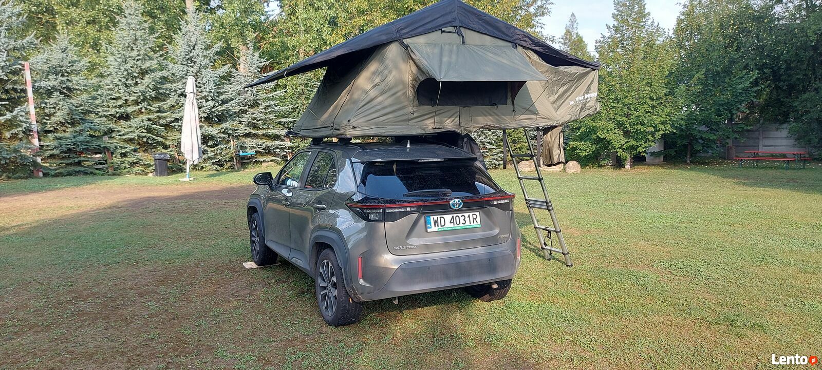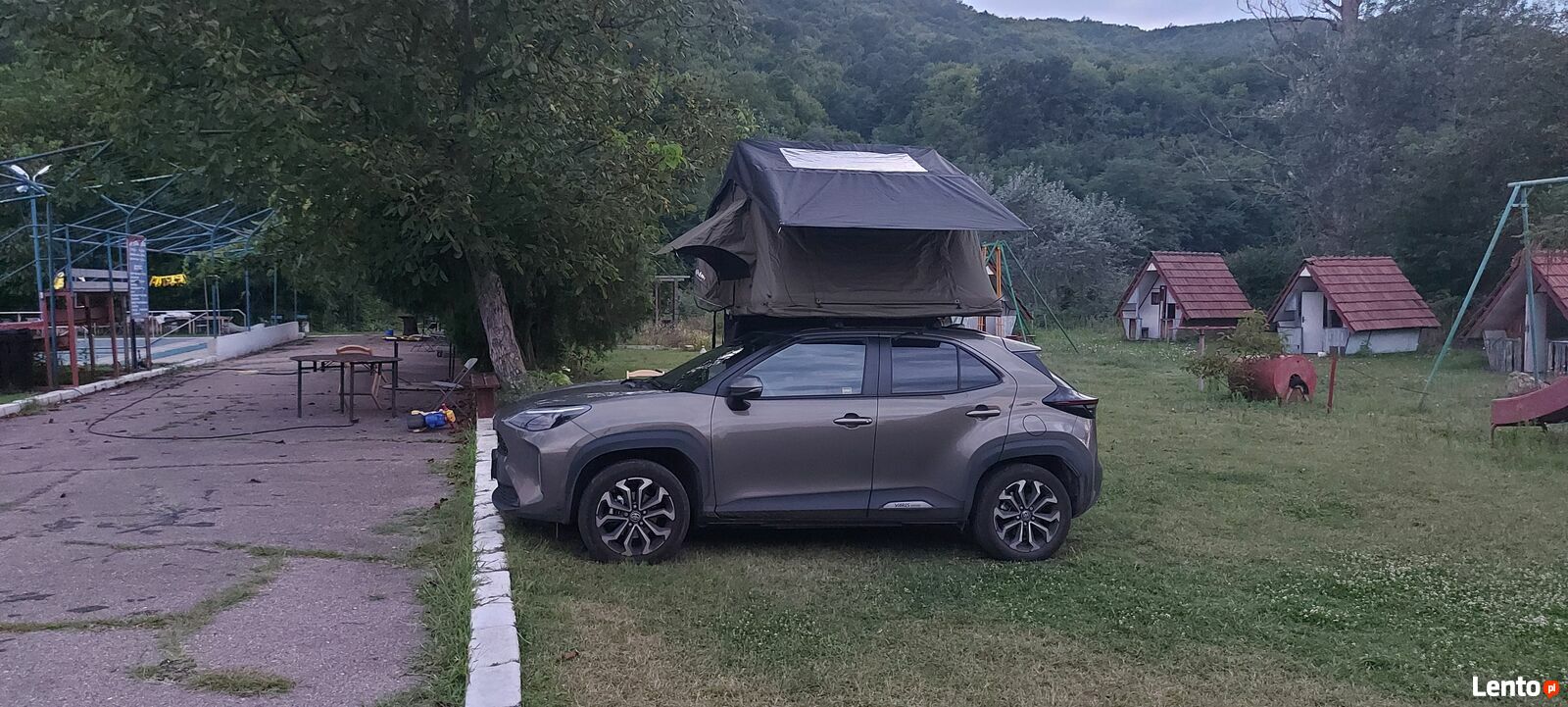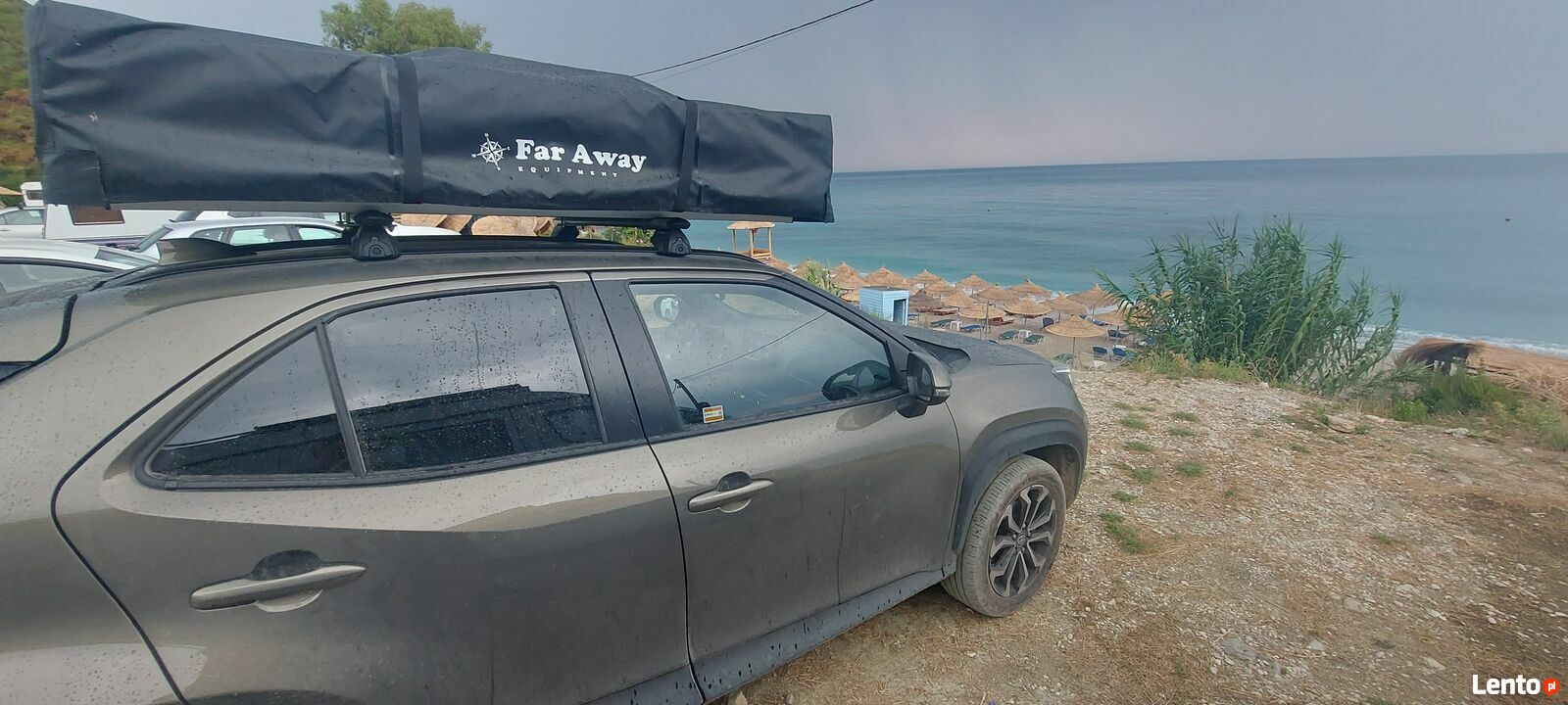Sprzedam namiot dachowy 160cm szerokości jak na zdjęciach użyty na jednym wyjeździe - bardzo wygodny materac i bardzo łatwe rozkładanie. Dodatkowo wyposażony w oświetlenie LED wraz z power bankiem, kieszenie na buty, wsporniki do okien itp.GOTOWY DO UŻYCIA, NIE MUSISZ MONTOWAĆ SZYN ANI NIC WIERCIĆ, W NOWYM TRZEBA TO ZROBIĆ SAMEMU