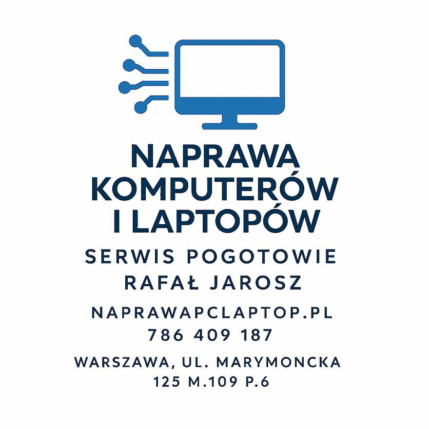 „Naprawa Komputerów i Laptopów Serwis Pogotowie Rafał Jarosz to wiodący serwis w Warszawie, specjalizujący się w naprawie komputerów i laptopów. Oferujemy usługi takie jak przywracanie danych, formatowanie, instalacja systemu Windows oraz wymiana części w laptopach i komputerach. Nasz zespół ekspertów zapewnia szybką i skuteczną naprawę oraz odzyskiwanie danych. Dzięki naszym usługom klienci mogą liczyć na fachową pomoc i indywidualne podejście do problemów. Wybierz Nas, aby przywrócić swoje urządzenia do pełnej sprawności."Pomagam przez internet drobne naprawy 24 H a z dojazdem do 20.