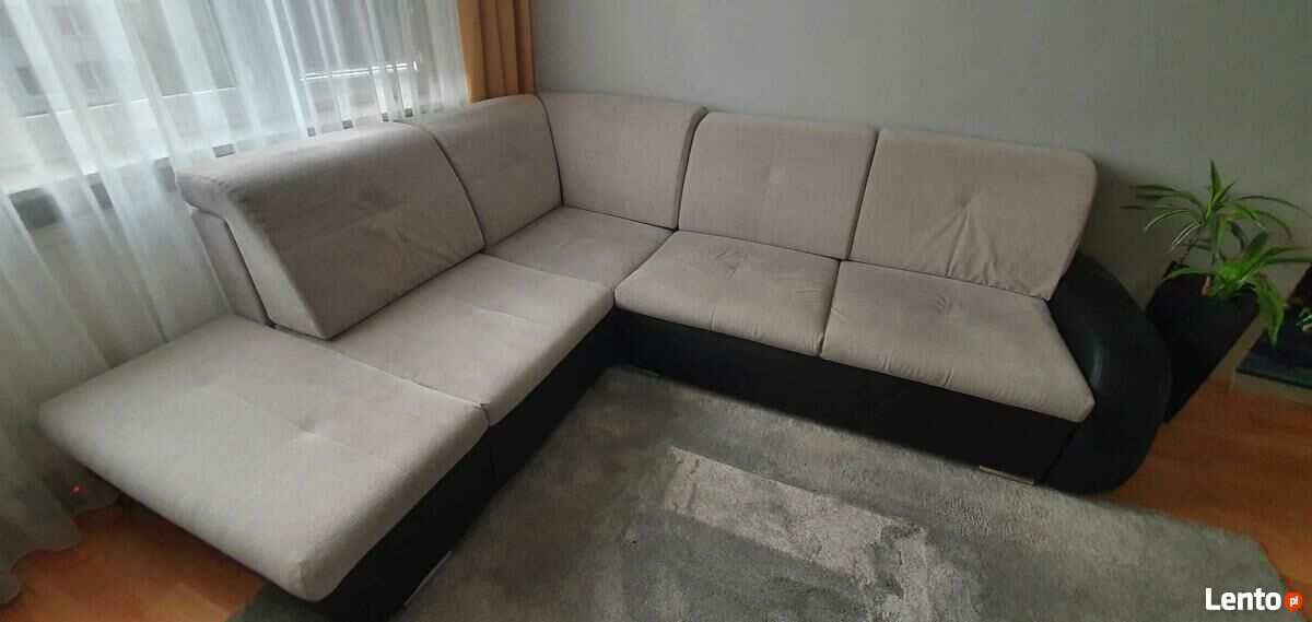 Witam mam do sprzedania narożnik BONN firmy Agata Meble. Zakupiony w lutym 2019r. Chromowane nóżki z tworzywa dodają nowoczesnego akcentu.Funkcja spania z mechanizmem ułatwiającym rozkładanie zapewnia wygodny i spokojny sen. Wymiary spania 140x200cm. Posiada pojemnik na pościel. Narożnik jest bardzo wygodny.Wymiary całkowite głębokość:212cm, szerokość 253cm , wysokość83cm.Wykonany jest ze specjalnego materiału który nie absorbuje wody I jest łatwy do czyszczenia. Podłokietnik I dół zostały wykonane z eco skóry. Stan uważam za bardzo dobry bez widocznych plam I uszkodzeń. Kolor jasnoszary-czarny. Poduszki są profilowane I nie zsuwające się. Narożnik został odświeżony I czeka na nowego właściciela:) Osoby zaintetesowane proszę o wiadomość Prywatną bądź na nr tel 50*******04