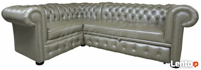 Narożnik Chesterfield March skóra naturalna sprężyny bonell