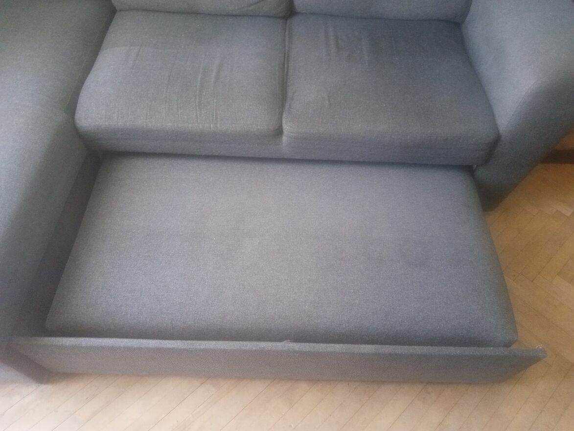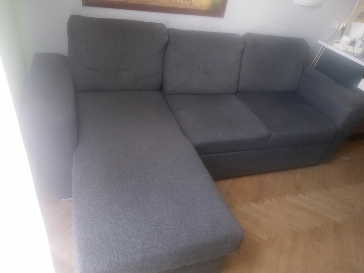 Narożnik użytkowany niecałe 2 lata, zadbany i wygodny. Odbiór osobisty, zniesienie we własnym zakresie z drugiego piętra.