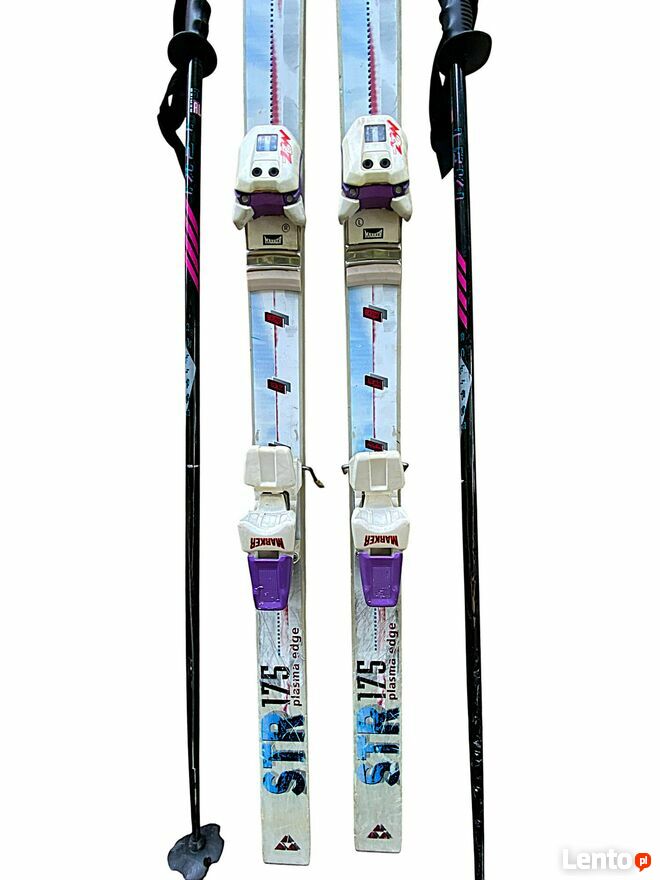 Nart zjadowe Ficher Plasma Edge Str 175 z wiązaniami Marker M27 i kijkami o długości 125 cmw średnim stanie