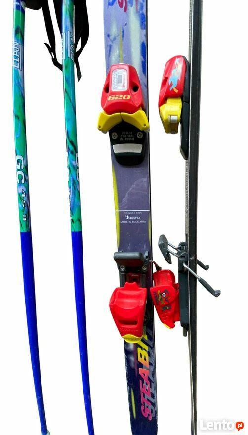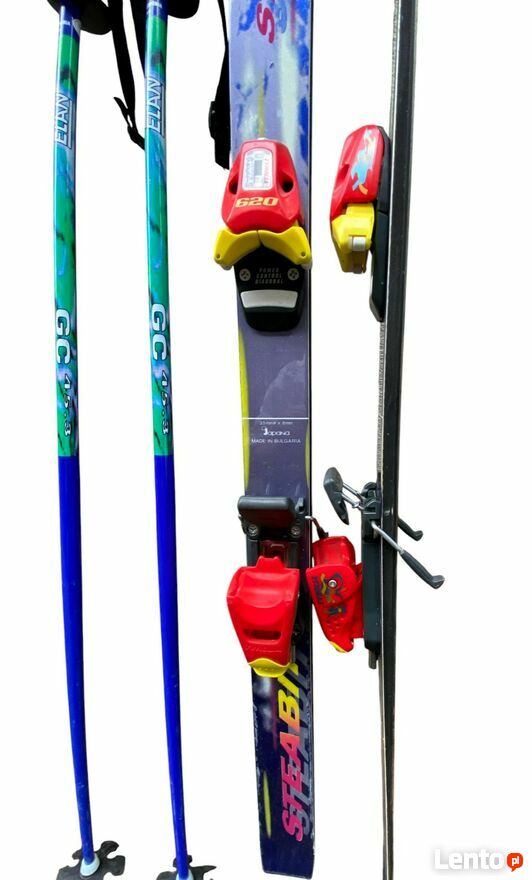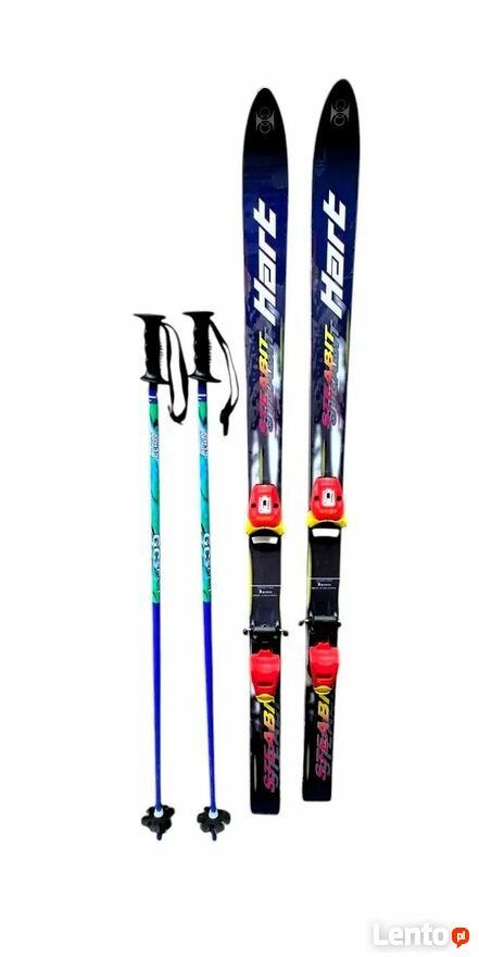 Narty zjazdowe Steabit Hart dł 180 cm z wiązaniami Tyrolia 620 i kijkami Elan GC 45.3 din 7884 ovdługości 110 cmużywane w dobrym stanie