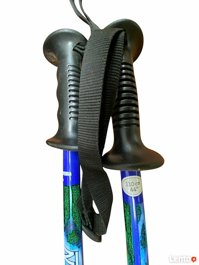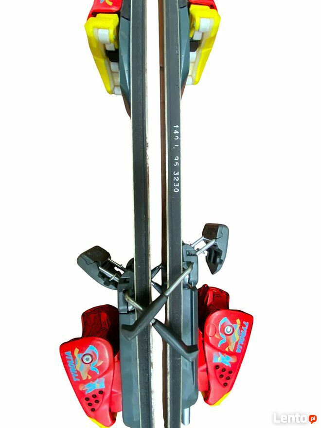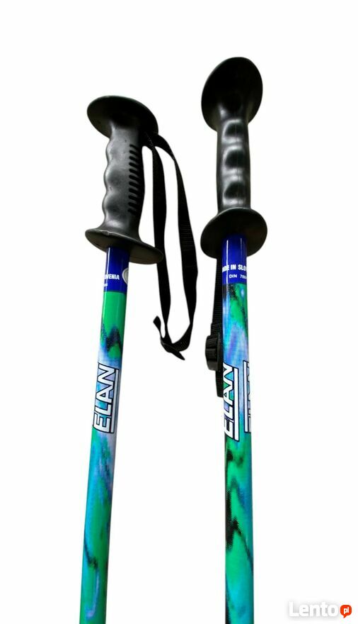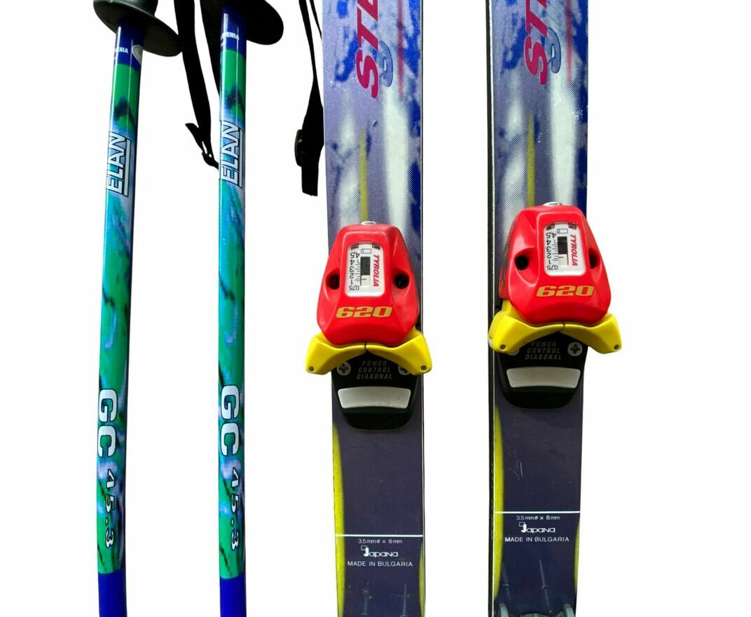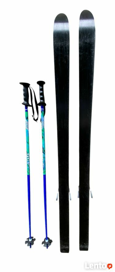 Narty zjazdowe z wiązaniami Tyrolia i kijkami Elan