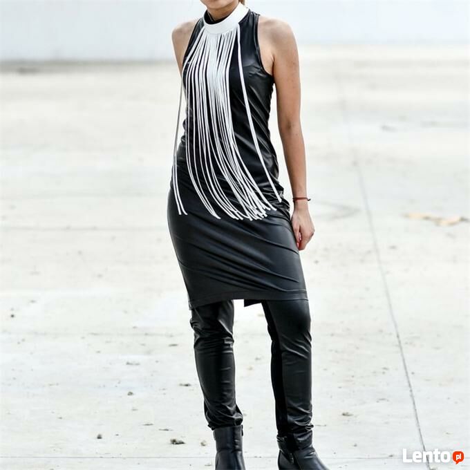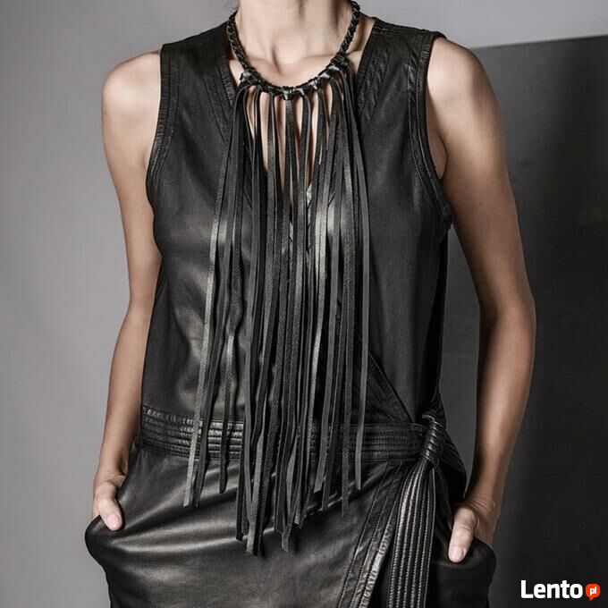 Witam,oferuję bardzo oryginalny wzór naszyjnika wykonanego z ekologicznej skóry z długimi frędzlami.