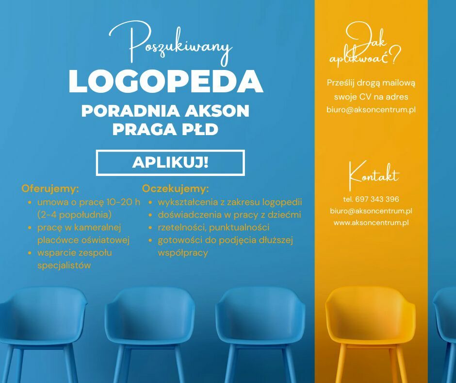 Niepubliczna Poradnia Psychologiczno-Pedagogiczna "Centrum Akson" to miejsce, w którym codziennie pomagamy dzieciom rozwijać się i wspieramy ich rodziny w budowaniu harmonijnych relacji. Nasz zespół tworzą praktycy z wieloletnim doświadczeniem, którzy wierzą w siłę współpracy i indywidualne podejście do każdego dziecka.Wynagrodzenie przy umowie o pracę (wymiar 10h/tyg) w zależności od doświadczenia: 1900-2500 zł brutto. Możliwość zwiększenia wymiaru etatu.