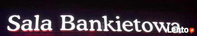 Sprzedam neon reklamowy SALA BANKIETOWA o długości 10 m, wyokość max 1.5m (duże litery S i B).Litery aluminiowe świecące przodem, podświetlenie LED. Przód liter biały, boki czerowne.
