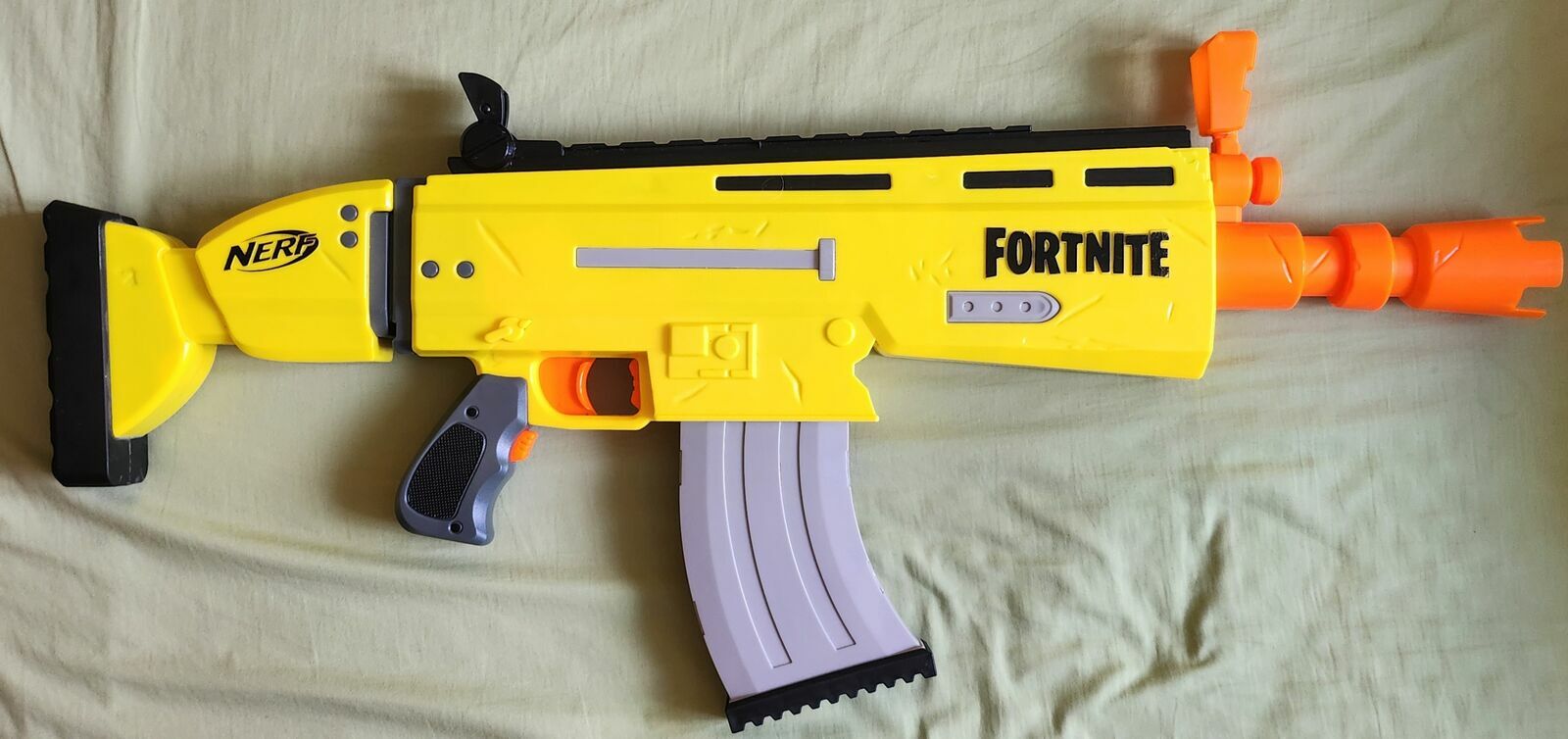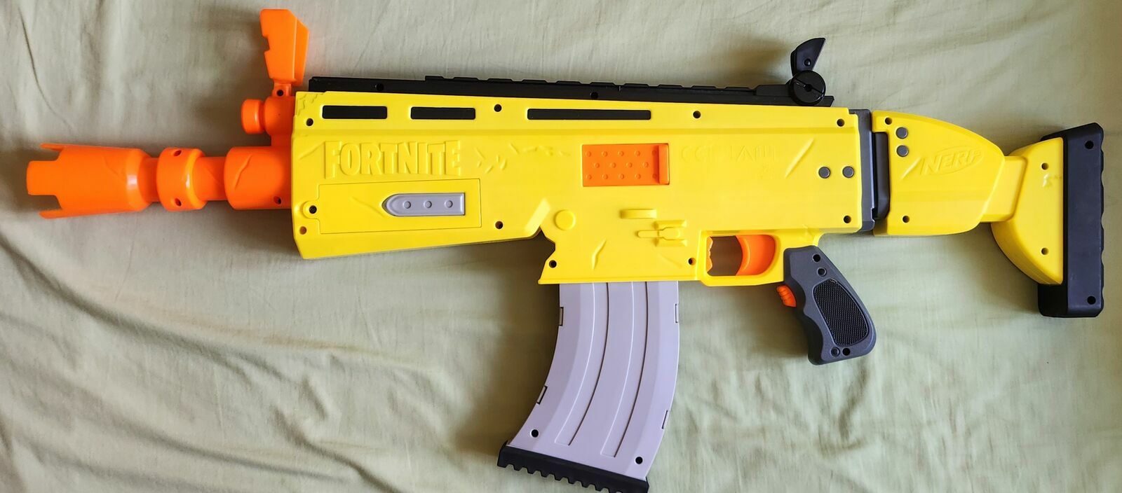 "ogłoszenie widoczne == AKTUALNE"Automatyczna wyrzutnia strzałek Nerf Fortnite z magazynkiem na 10 strzałek ( brak w zestawie ) Wyrzutnia ma wbudowany silniczek elektryczny zasilany czterema bateriami R6 ( AA paluszki, są w zestawie ) długość wyrzutni 76 cm. Zabawka w bardzo dobrym stanie bez uszkodzeń, sprawna.