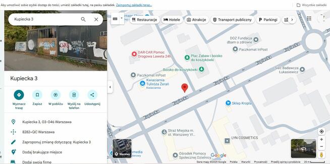 Do wynajęcia kontener o powierzchni ok. 15 m², położony na działce przy ul. Kupieckiej 3 w Warszawie (dzielnica ...