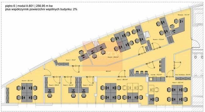 Do wynajęcia lokal o podwyższonym standardzie o powierzchni netto 713 mkw. na dziesiątym, ostatnim piętrze nowoczesnego ...