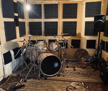Sala prób, ćwiczeniówka 20m2, dla perkusistek/ów do wynajęcia. Duży zestaw z blachami do dyspozycji. Saska Kępa ...