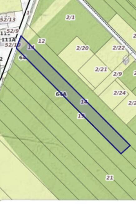 Działka o pow ok 2400m, w kształcie trapezu o długości 128m i szerokości od frontu 22m i z tyłu działki 15m. Dojazd ...