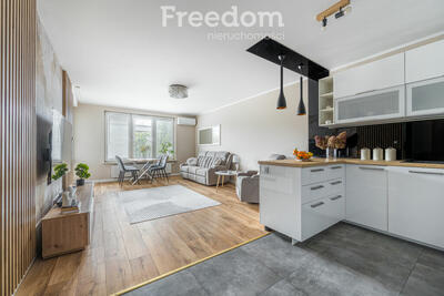 Na sprzedaż niezamieszkane mieszkanie na parterze kameralnego budynku. Wnętrze obejmuje: salon z aneksem kuchennym i ...