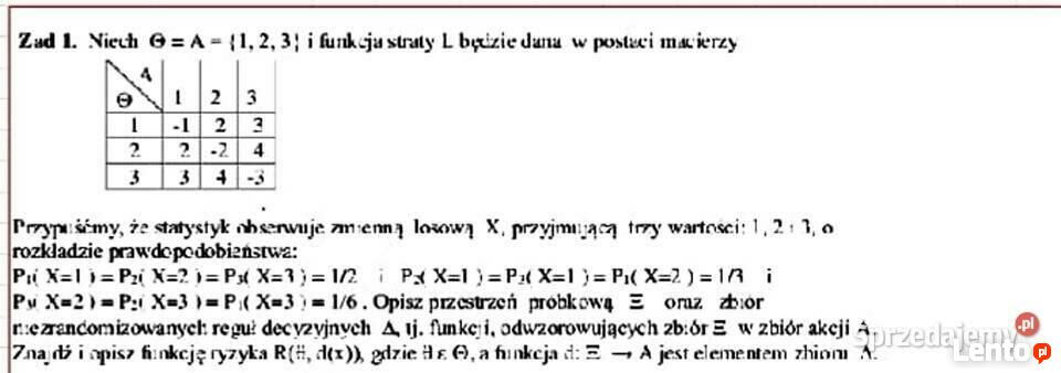 Opisz przestrzeń próbkową oraz zbiór Niezrandomizowanych reguł decyzyjnych.