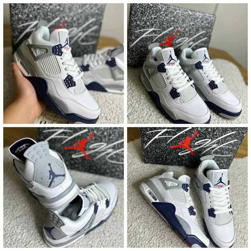 Buty męskie i Damskie Nike Air Jordan J4 Retro w kolorze biało-granatowym.Dostępne Rozmiary 36-46