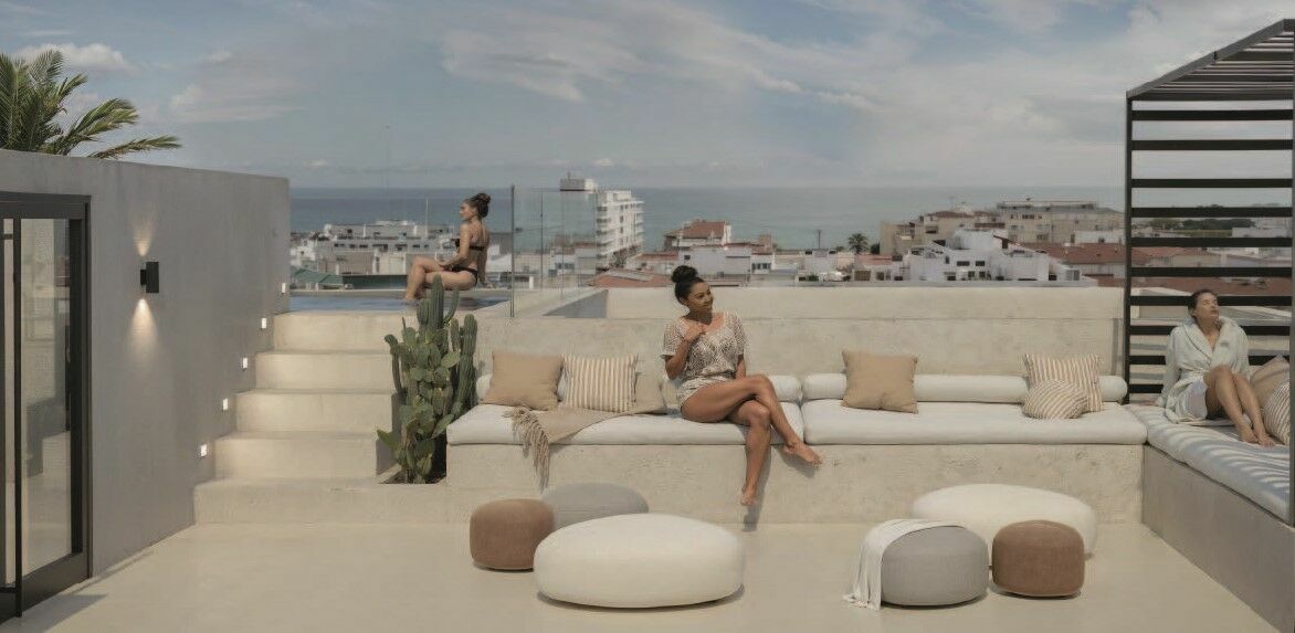solarium osiedlowe z miejsce relaksu, z widokiem na morze