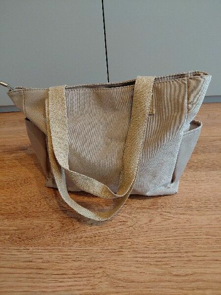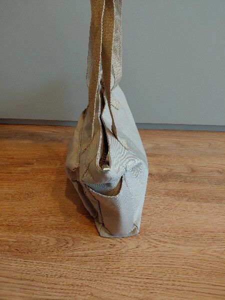 Sprzedam nową, pojemną beżową torbę idealną na co dzień, do pracy, na zakupy lub jako torba typu „mama bag”.Materiał jest lekki i wytrzymały, torba ma wygodne długie uszy oraz praktyczne kieszenie.