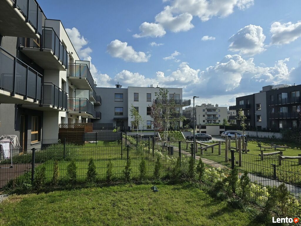 Osiedle wyróżnia niska, kameralna zabudowa, place zabaw oraz
