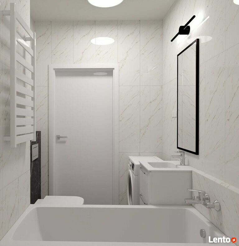funkcjonalną szafką, nowoczesne oświetlenie oraz komplet armatury