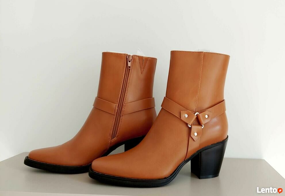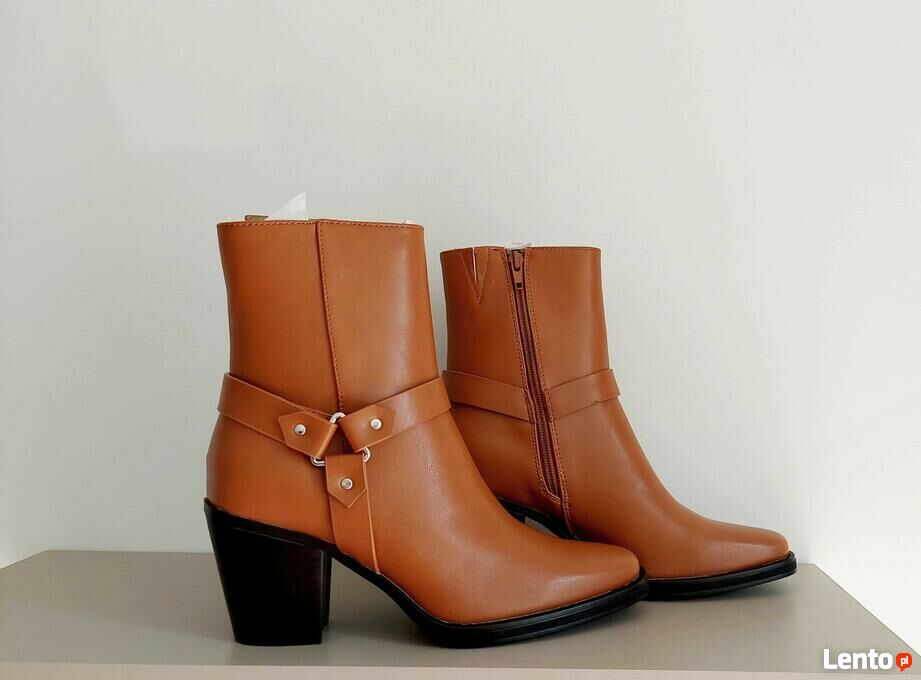 Mam do sprzedania nowe botki kowbojki Even&Odd. Kolor: cognac.Rozmiar 39, długość wkładki: 25cm.