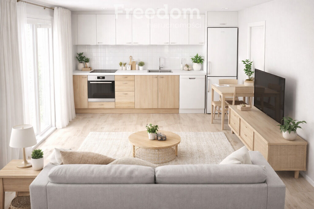 salon z aneksem kuchennym – jasna, dzienna przestrzeń