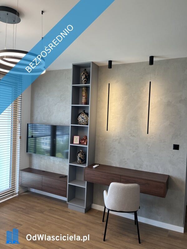 Cała zabudowa meblowa w apartamencie została wykonana na wymiar przez stolarza (zabudowana kuchenna, duża przestronna szafa wnękowa w przedpokoju oraz sypialni, meble łazienkowe i meble w salonie). W kuchni są zainstalowane nowe, na gwarancji, wysokiej klasy sprzęty AGD (lodówka, zmywarka, piekarnik, płyta indukcyjna, okap). W salonie jest najnowszej generacji sprzęt RTV. Apartament ma zainstalowane nowoczesne oświetlenie oraz klimatyzację, z którą można łączyć się zdalnie w celu schłodzenia mieszkania. Dodatkowo w kuchni pod szafkami górnymi (celem dodatkowego doświetlenia blatu roboczego) są zamontowane paski LED, które nadają intymny klimat temu pomieszczeniu. Apartament jest umieszczony daleko od sąsiadujących budynków co zapewnia dużo prywatności.
