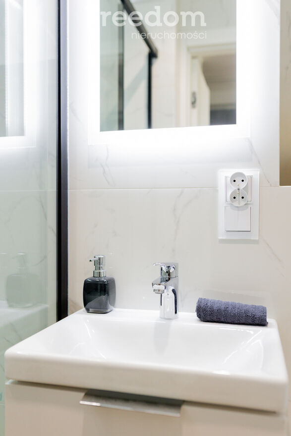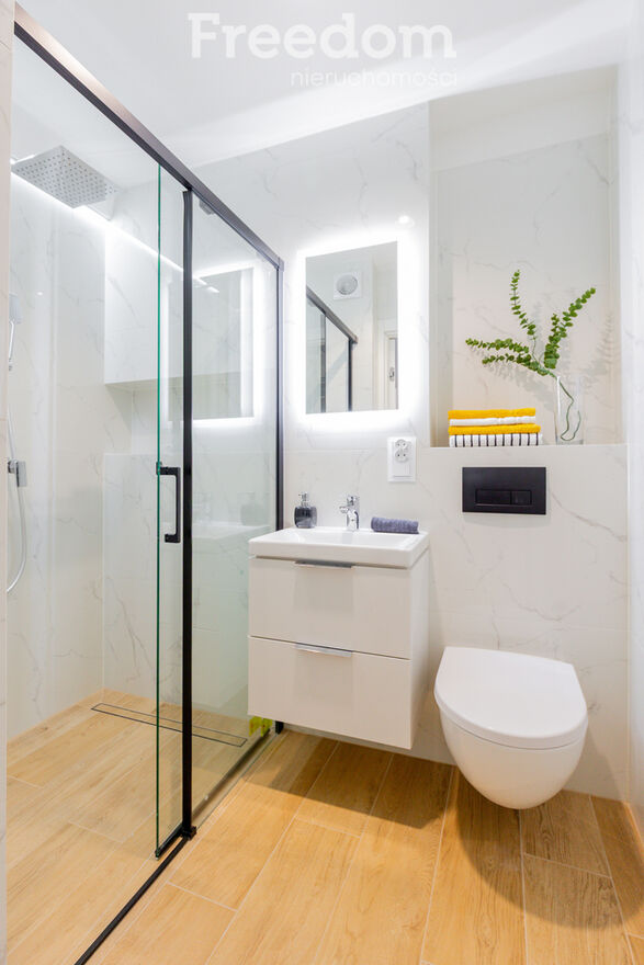 Nowa, w pełni wykończona, komfortowa łazienka z dużym prysznicem