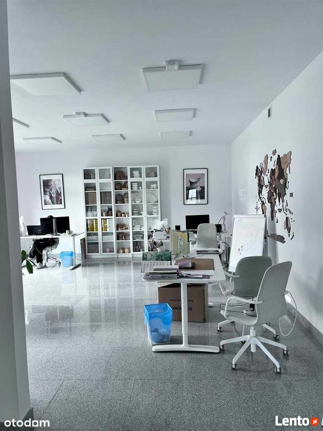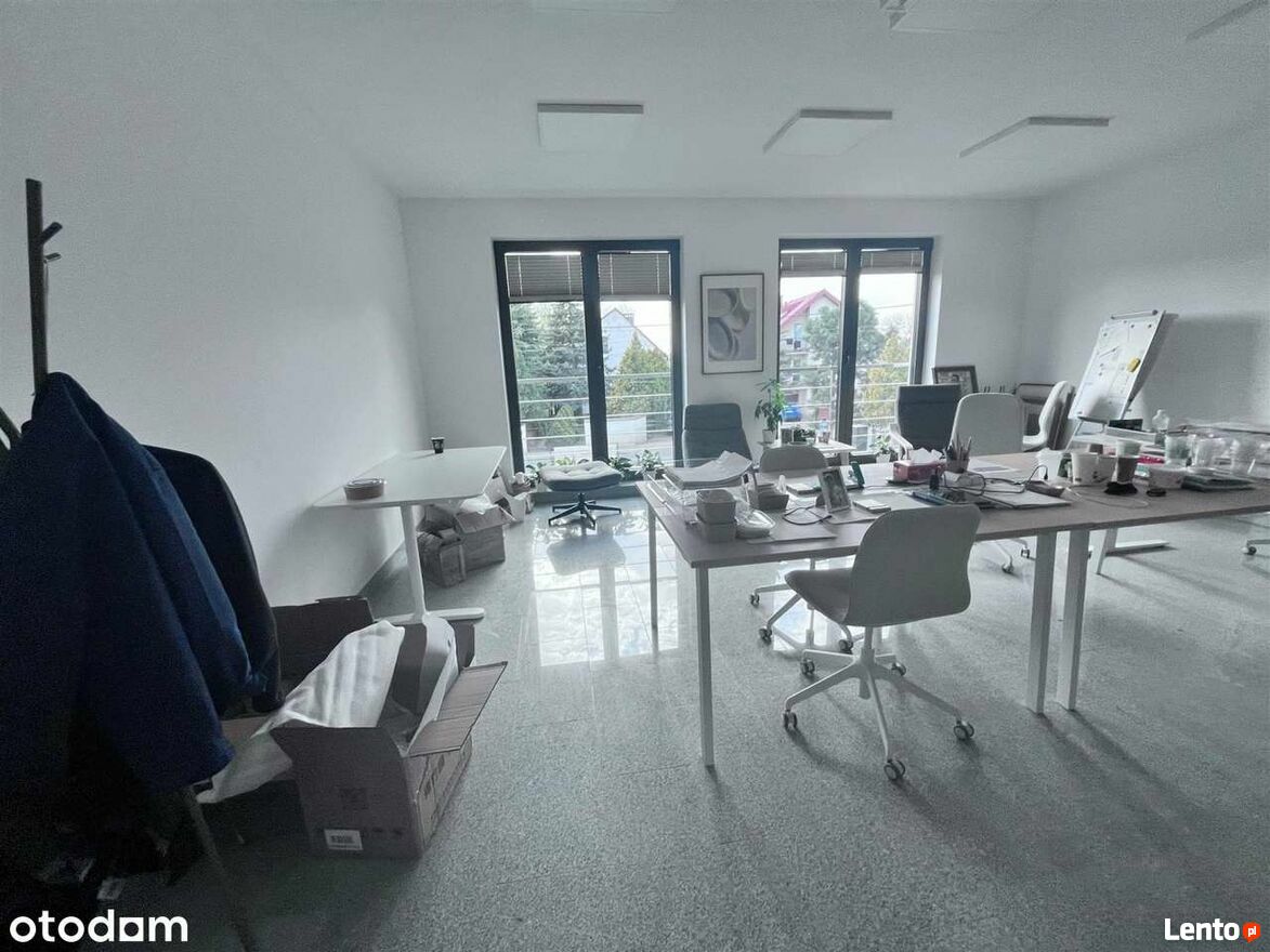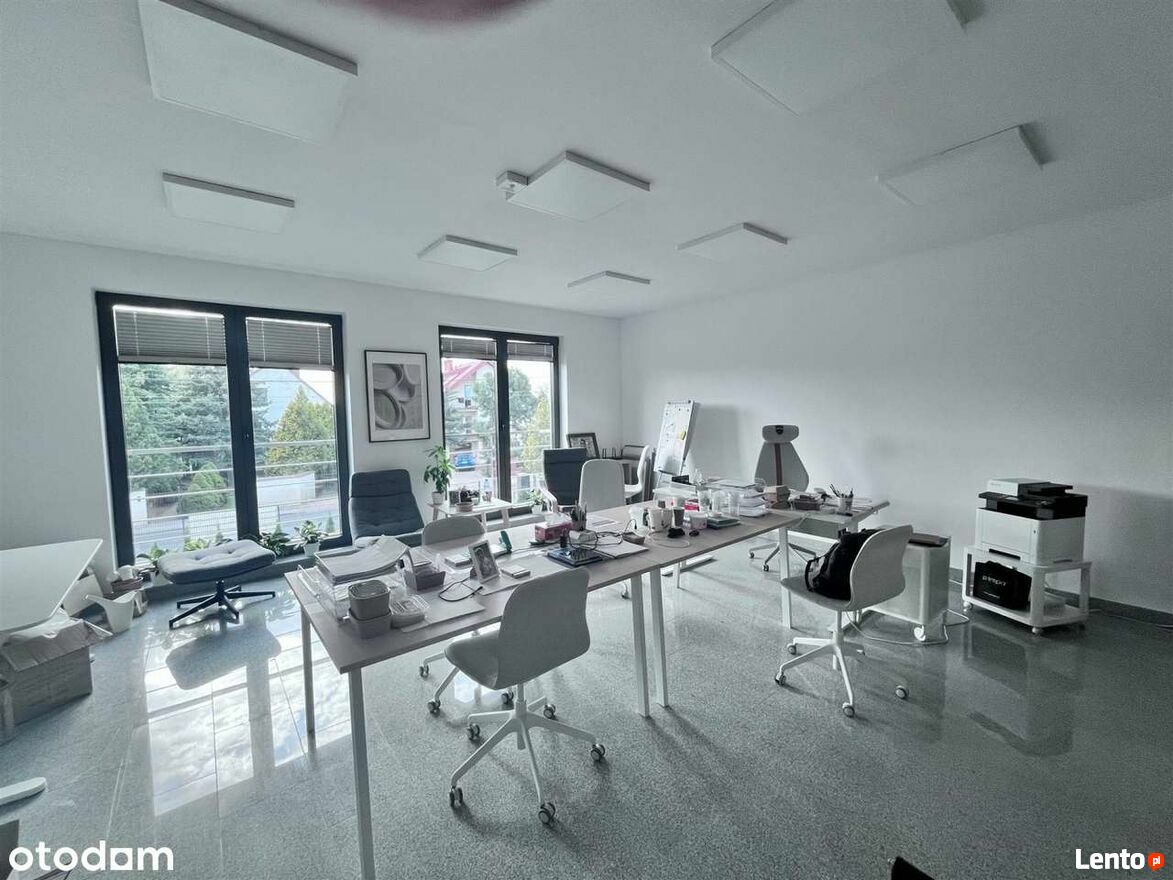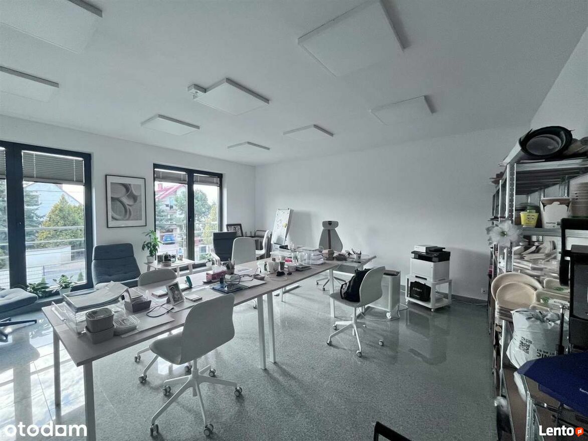Biuro bardzo nowoczesne, dwie łazienki (jedna z prysznicem), kuchnia, pomieszczenia gospodarcze. holl.