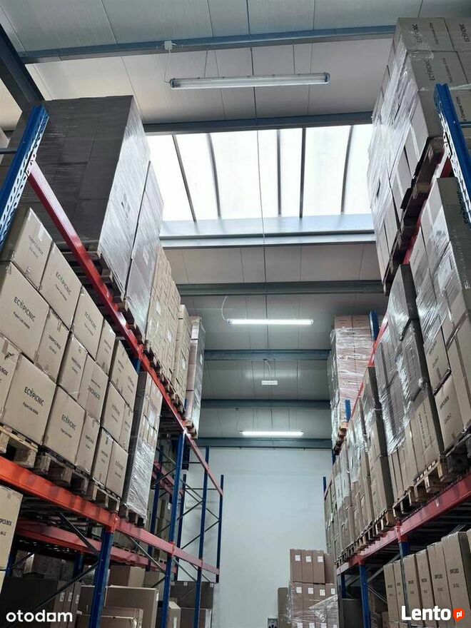 Magazyn połaczony z elegancką powierzchnią biurową 150 m2 do którego są dwa wejścia (bezpośrednio z zewnątrz budynku oraz z magazynu) Powierzchnia biurowa w cenie ( 550m2+150 m2)