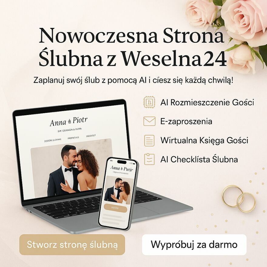 Stwórz Nowoczesną Stronę Ślubną z Weselna24!Zorganizuj swój ślub łatwiej niż kiedykolwiek dzięki inteligentnym narzędziom:
