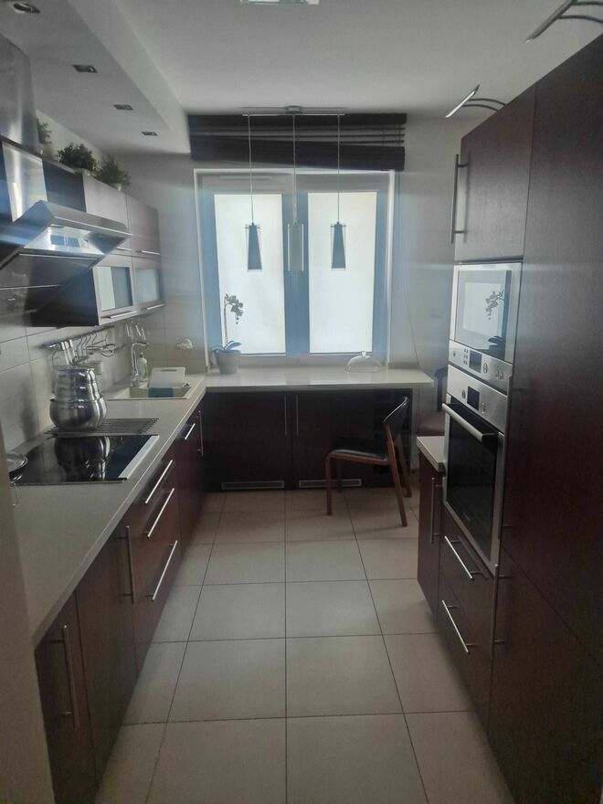 Mieszkanie w pełni umeblowane i wyposażone (lodówka, zmywarka, piekarnik, płyta, pralka). Gotowe do zamieszkania od zaraz.