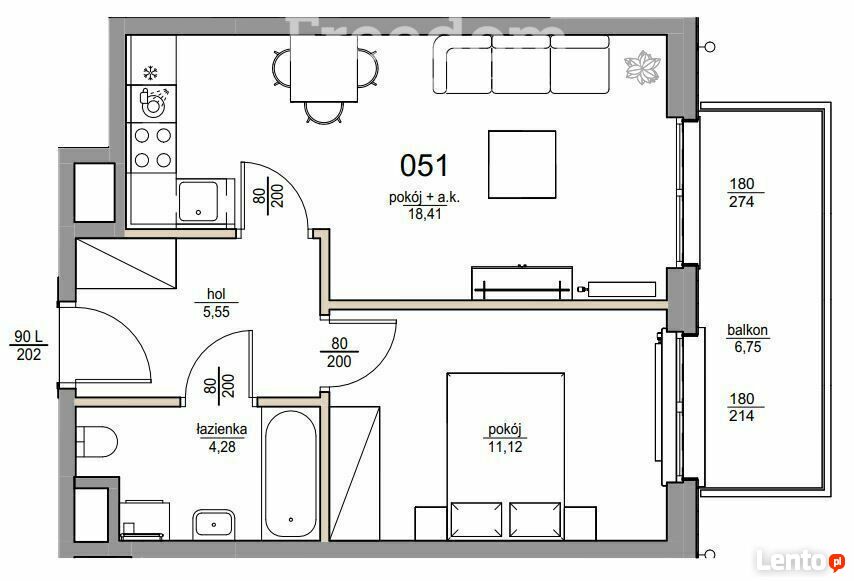 Na powierzchnie (40.50 m2) mieszkania wchodzi:
