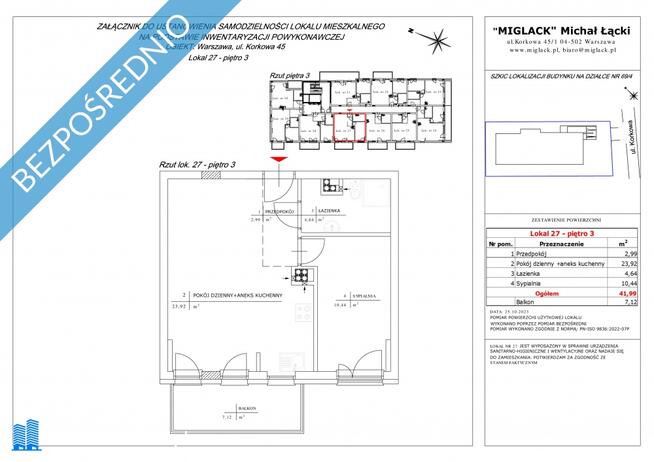 Adres Warszawa Wilanów Zawady Piętro / kondygnacje 3/3 Układ 2-pok + kuchnia Powierzchnia całkowita 42,79 m2 O ...