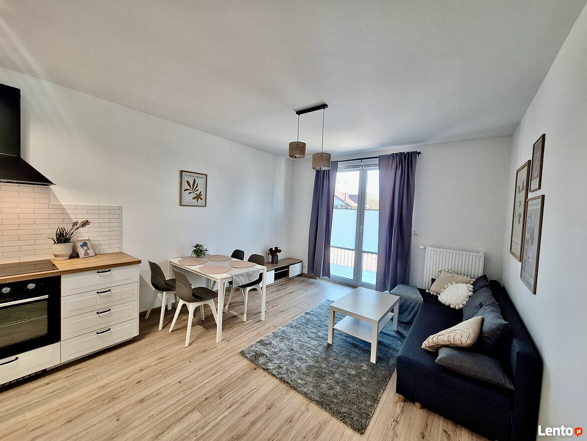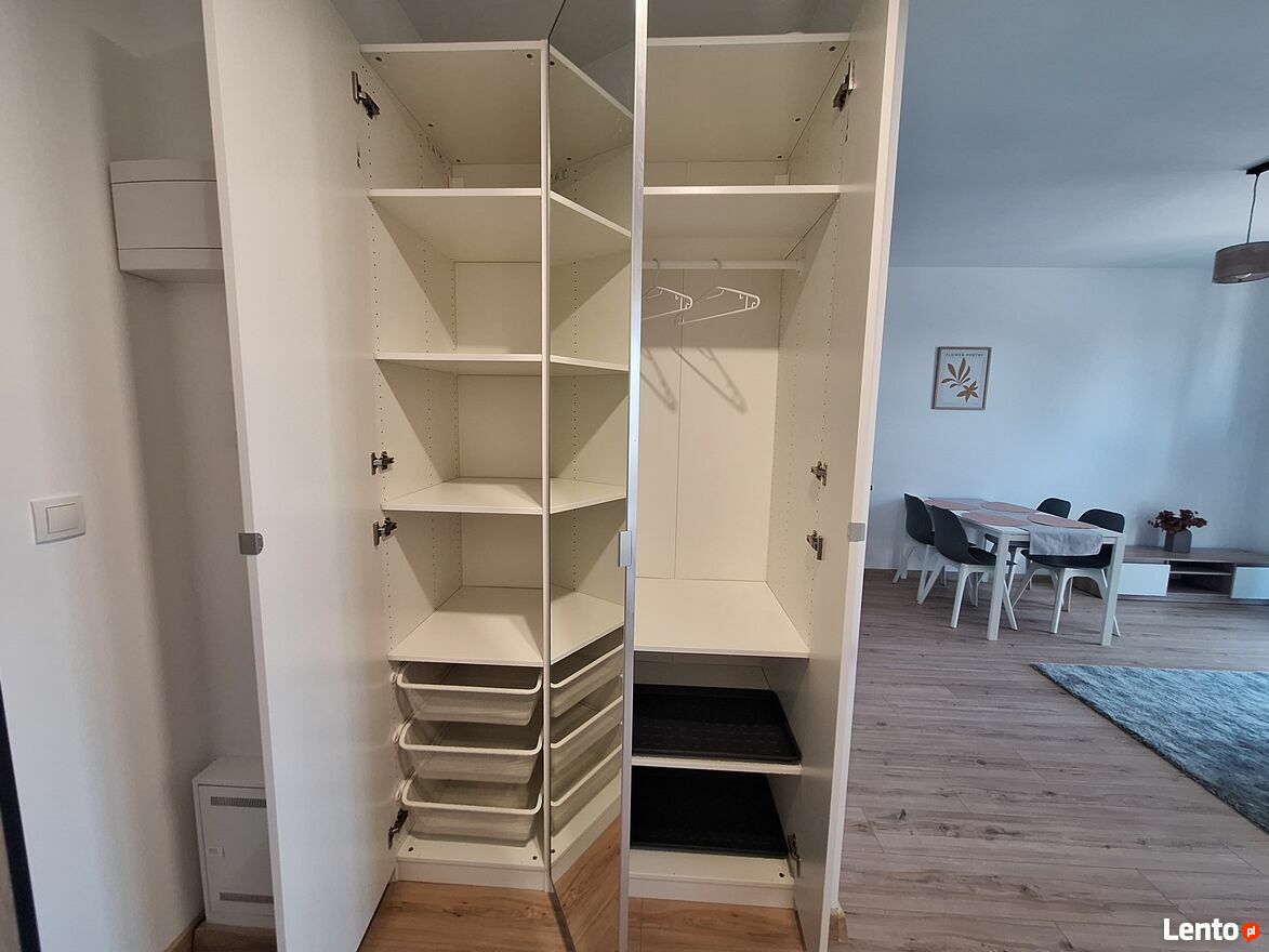 Mieszkanie jest w pełni umeblowane i wyposażone w nowoczesny sprzęt AGD. Wszystkie meble widoczne na zdjęciach są dostępne dla najemcy.