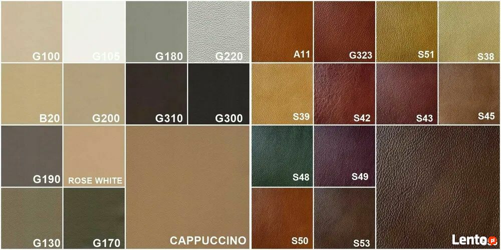 W ofercie posiadamy około 151 kolorów skóry naturalnej do wyboru.