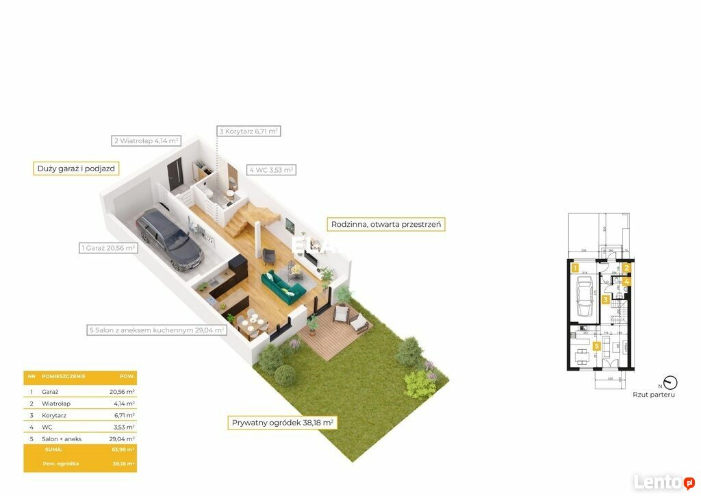 - salon połączony z kuchnią i wyjęciem na taras 29,04 m2