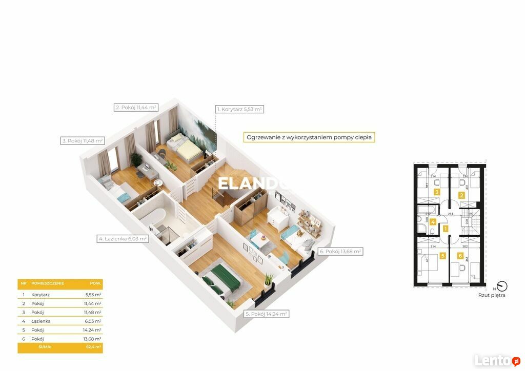 - 4 sypialnie 11,44 m2, 11,48 m2, 14,24 m2, 13,68 m2