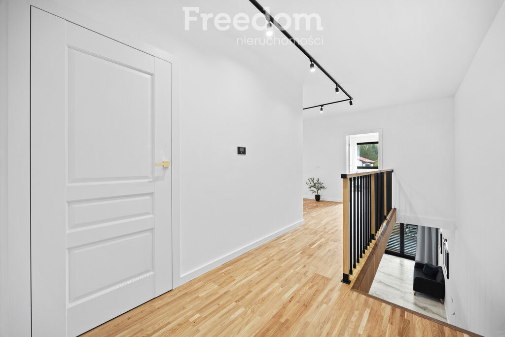 Na piętro prowadzą eleganckie, drewniane schody. Tutaj zaplanowano