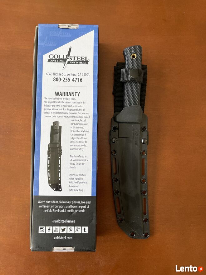 Sprzedam widoczny na foto nóż amerykańskiej firmy Cold Steel model Recon Tanto. Nóż w idealnym stanie wraz z pochwą. Lekko porysowany czubek (ale tylko bok klingi, nie ostrze !). Długość ostrza około 18 cm, długość całkowita okolo 29 cm, grubość ostrza 5mm.Sprawdź zainteresowanie tym ogłoszeniem