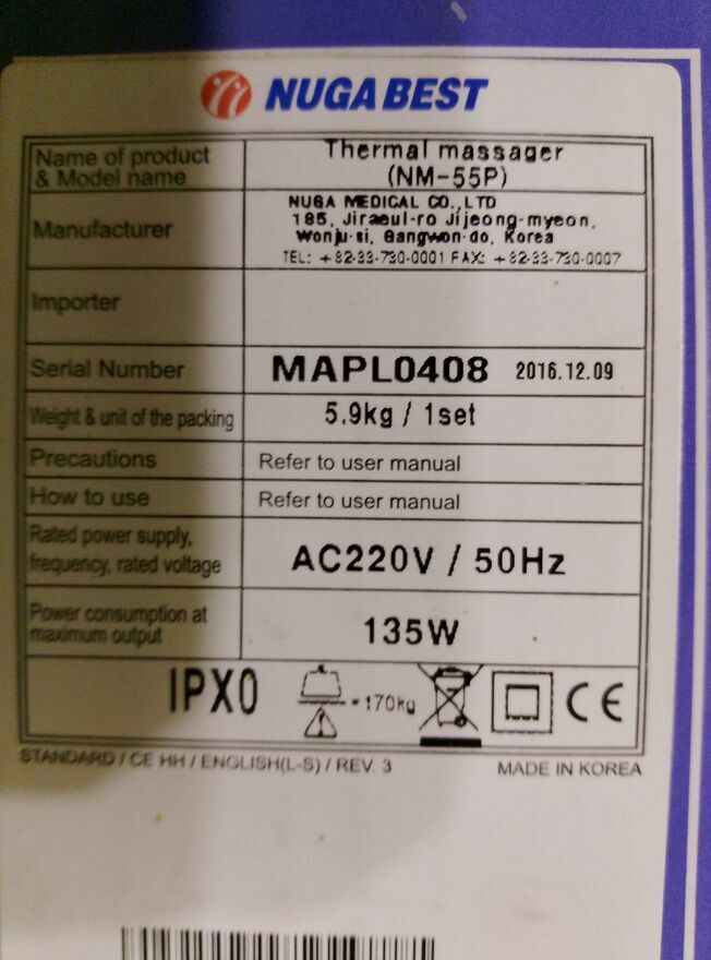 Sprzedam nowy nie używany masażer z miostymulacją Drugie Serce firmy Nuga Best NM-55P.Od dawna wiadomo że stopa jest odzwierciedleniem całego organizmu. Stymulacja biologicznie aktywnych punktów i stref na stopach polepsza pracę narządów wewnętrznych. Z tego powodu naukowo-badawcze laboratorium południowo-koreańskiej firmy Nuga Medical opracowało unikalny przyrząd - masażer nóg «Drugie Serce», wykonany z ceramiki turmalinowej. Masaż stóp za pomocą przyrządu «Drugie Serce» polepsza żylny odpływ, zmniejsza obrzęk nóg, usuwa zmęczenie, normalizuje poziom cukru we krwi, przyśpiesza detoksykację organizmu, oczyszcza krew i limfę. Wskutek takiego oddziaływania na stopy poprawia się sen, redukuje się napięcie, aktywizują się siły witalne organizmu.