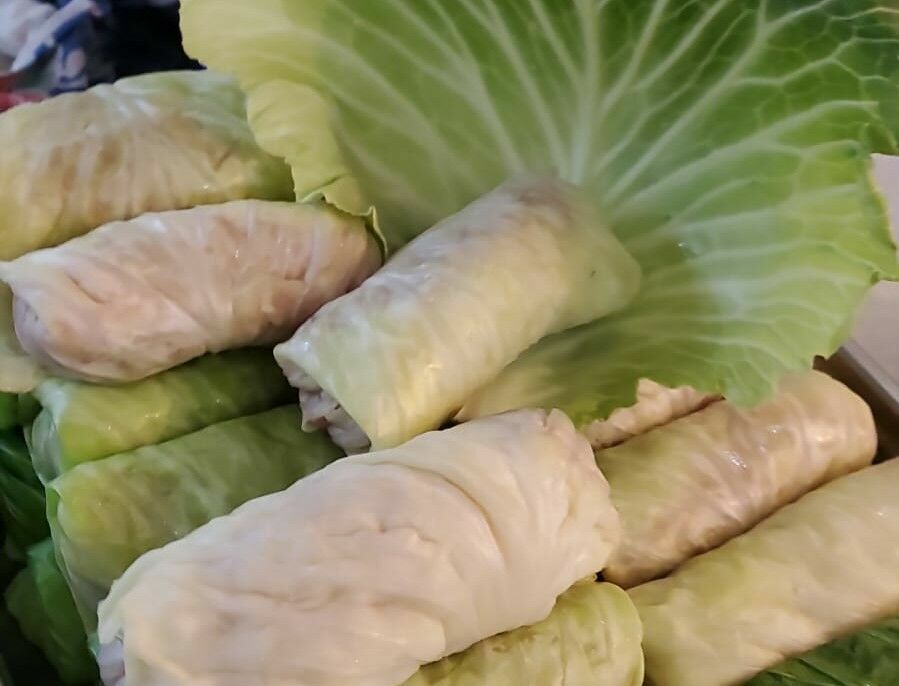 2. Gołąbki w sosie pomidorowym z ryżem oraz zawinięte w kapustę. W słoiku znajdują się 4 gołąbki.