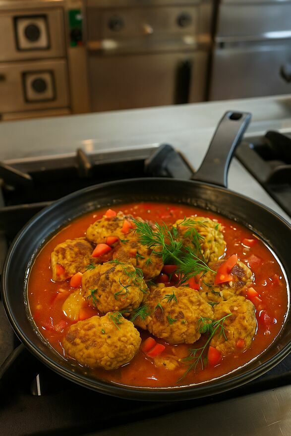 4A. Pulpety drobiowe w sosie pomidorowym lub innym (słoik 1 szt.) smażone kotlety mielone z piersi kurczaka w sosie pomidorowym. W słoiku znajduje się 5-6 kotletów drobiowych.