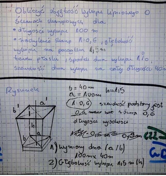 Objętość wykopu o ścianach skarpowych - Zestaw Rozwiązań.