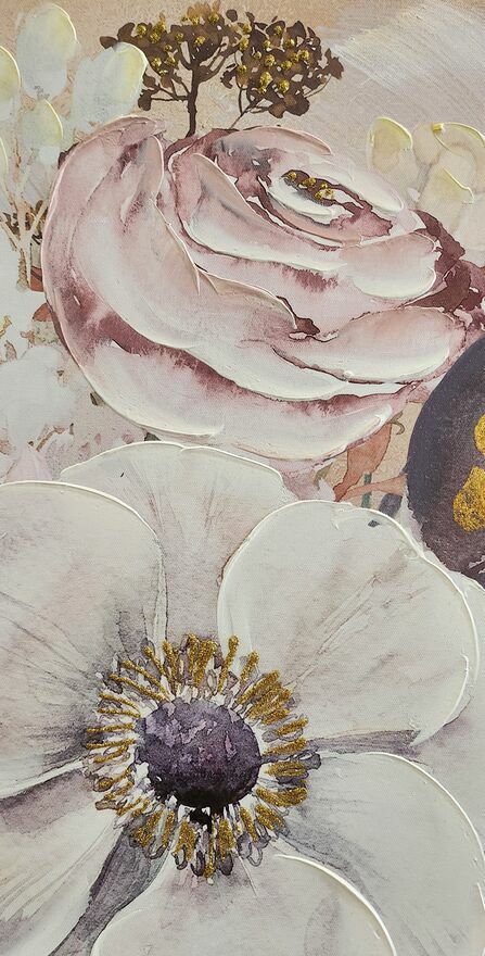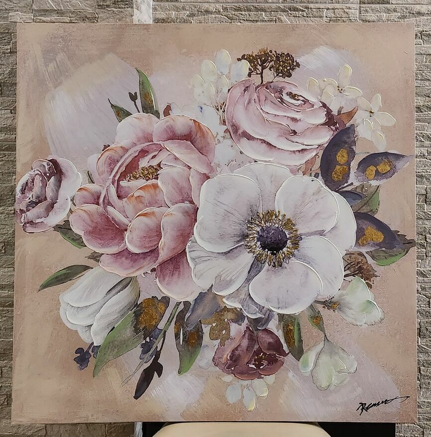 "ogłoszenie widoczne == AKTUALNE"Obraz Kwiaty ręcznie malowany na płótnie. Wymiary 80 x 80 cm. Obraz bez uszkodzeń i śladów użytkowania, stan bardzo dobry.