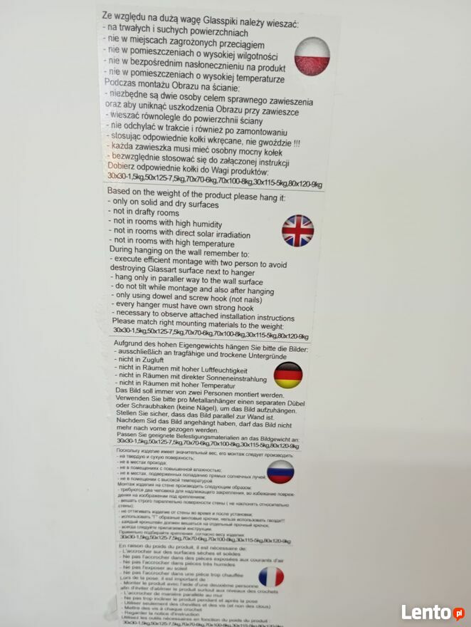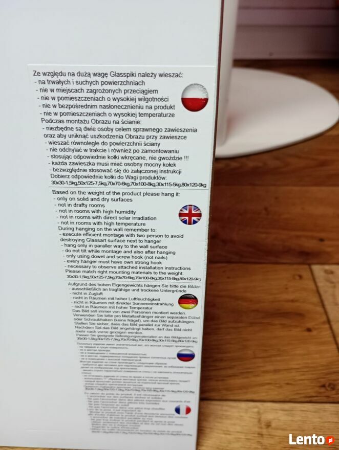 Obraz bezpieczny w użytkowaniu i gotowy do powieszenia – posiada metalowe zawieszki zamocowane do tylnej części obrazu oraz piankowe dystanse regulujące równomierny odstęp obrazu od ściany.
