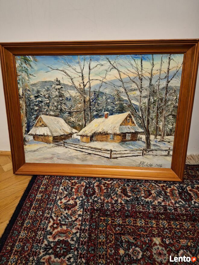Co prawda to nie Jan Matejko ale zawsze nazwisko szlachetne. Przedstawiam obraz Eustachego Matejki z 2014 roku , przedstawiający Beskidzką Zagrodę w zimie w Tatrach. Obraz olejny na płótnie o wymiarach wraz z ramą 76 cm x 58 cm. Preferuję odbiór osobisty w Warszawie ze względu na przykre doświadczenia z poprzednimi przesyłkami, które docierały uszkodzone. Ewentualna przesyłka po uzgodnieniu kosztu zabezpieczenia obrazu w odpowiednie opakowanie i firmy kurierskiejSprawdź zainteresowanie tym ogłoszeniem