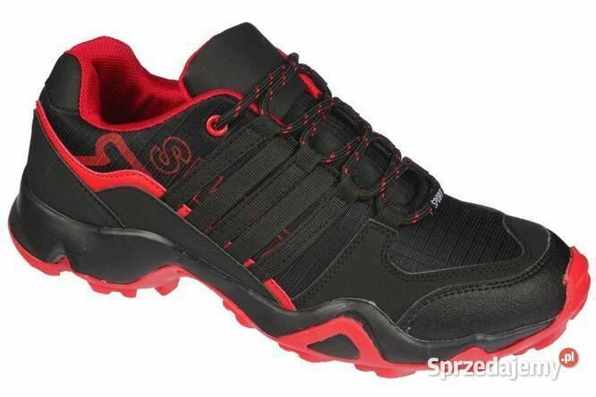 Buty sportowe męskie Sport Buty sportowe męskie firmy Sport w czarnym kolorze i czerwonymi wstawkami. Stworzone zostały z najlepszej jakości skóry ekologicznej i materiałów tekstylnych, które zostały połączone ze sobą w bardzo modny i ciekawy sposób. Posiadają grubą piankową podeszwę zakończoną gumowym bieżnikiem, który zapewnia przyczepność do podłoża oraz stabilność. Miękkie wnętrze wraz z tekstylną wkładką gwarantują wysoki komfort podczas użytkowania. Cholewka umożliwia łatwe czyszczenie, natomiast solidne wykonanie gwarantuje długotrwałość produktu. Model ten idealnie sprawdzi się w codziennym użytkowaniu ale będzie również świetny na górskie wycieczki. Dostępny jest w rozmiarach 41-46. Materiał zewnątrz: Tekstylny, skóra ekologiczna Materiał w środku: Tekstylny Materiał wkładki: Tekstylny Podeszwa: Piankowa z gumowym wykończeniem Zapięcie: Wiązanie Stan: NoweMarek